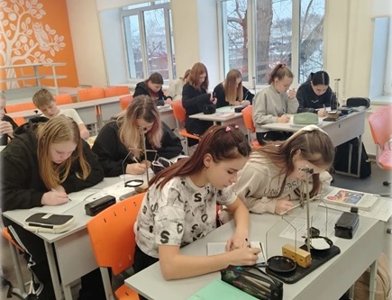 На уроке физике в 7А классе обучающие учились работать с рычажными весами. Цель работы была научиться правильно измерять массу тел, используя рычажные весы и гири стандартной системы единиц (граммы). Освоение практических навыков работы с мерительными приборами и развитие умения аккуратно фиксировать полученные значения измерений.