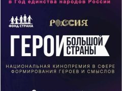 Национальная Кинопремия «Герои большой страны» в преддверии Праздника Весны и Труда и Дня Победы при поддержке Президентского фонда культурных инициатив, проектного офиса Года единства народов России, Национального центра «Россия» и...